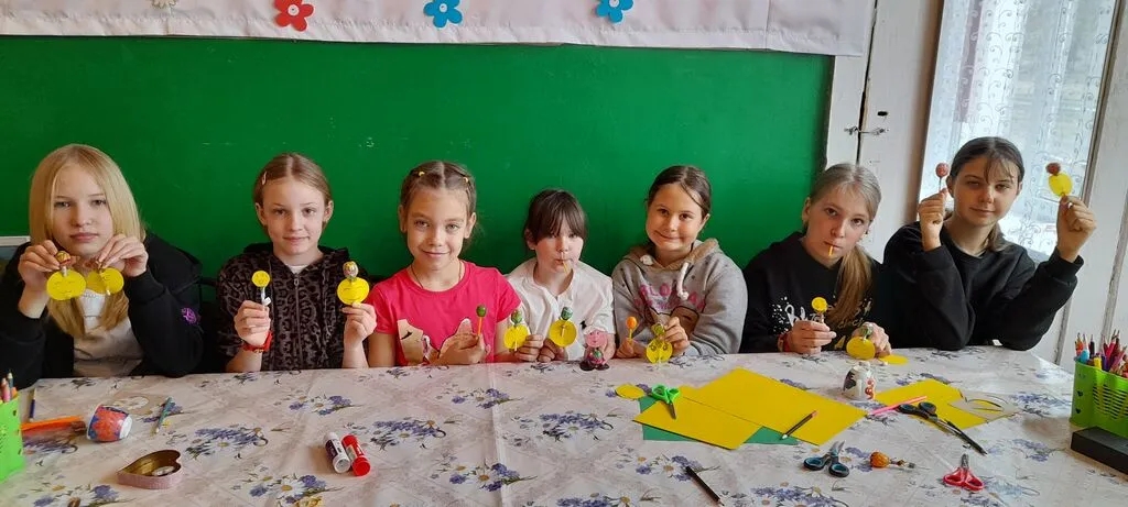 Вернувшись в ДК, ребята узнали много нового об истории праздника 1 апреля: как в разных странах принято шутить и веселиться, и почему улыбчивый смайлик стал символом хорошего настроения на весь мир. «Непоседы» своими руками сделали яркие поделки с чупа-чупсами. Получились не просто конфеты, а настоящие «улыбки» в подарок!