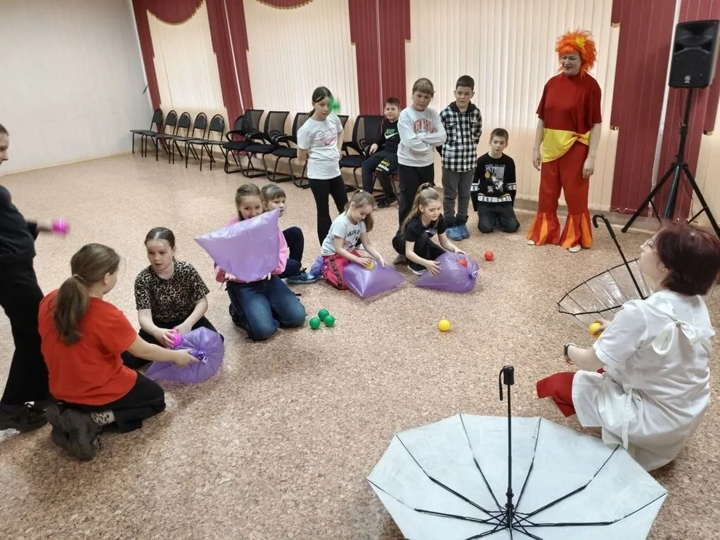 А затем началось настоящее «лечение» от скуки! Гости прошли терапию весёлыми играми и эстафетами — «Смешные рожицы», «Мешочная катапульта», «Весёлые официанты». Ребята учились передавать мысли с помощью пантомимы, демонстрируя невероятную артистичность и находчивость. И даже установили новый рекорд по переносу самого большого количества воздушных шаров!