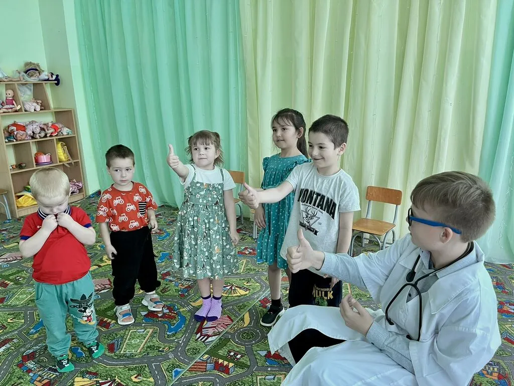 🪥Дети наперебой учили доктора Апчхи, зачем нужно чистить зубы, какие продукты полезные, а от каких лучше отказаться, и как правильно просыпаться, чтобы день был удачным. А наш гость смешил ребят, внимательно слушал их сердечки, и даже пообещал, что теперь каждое утро будет начинать с зарядки 😄