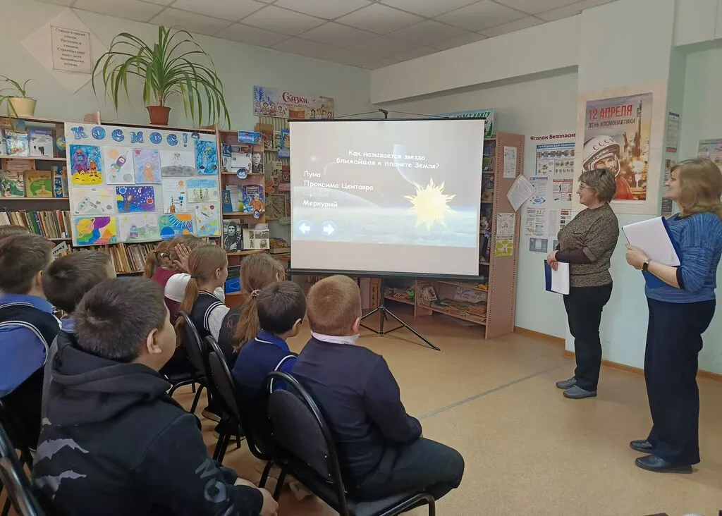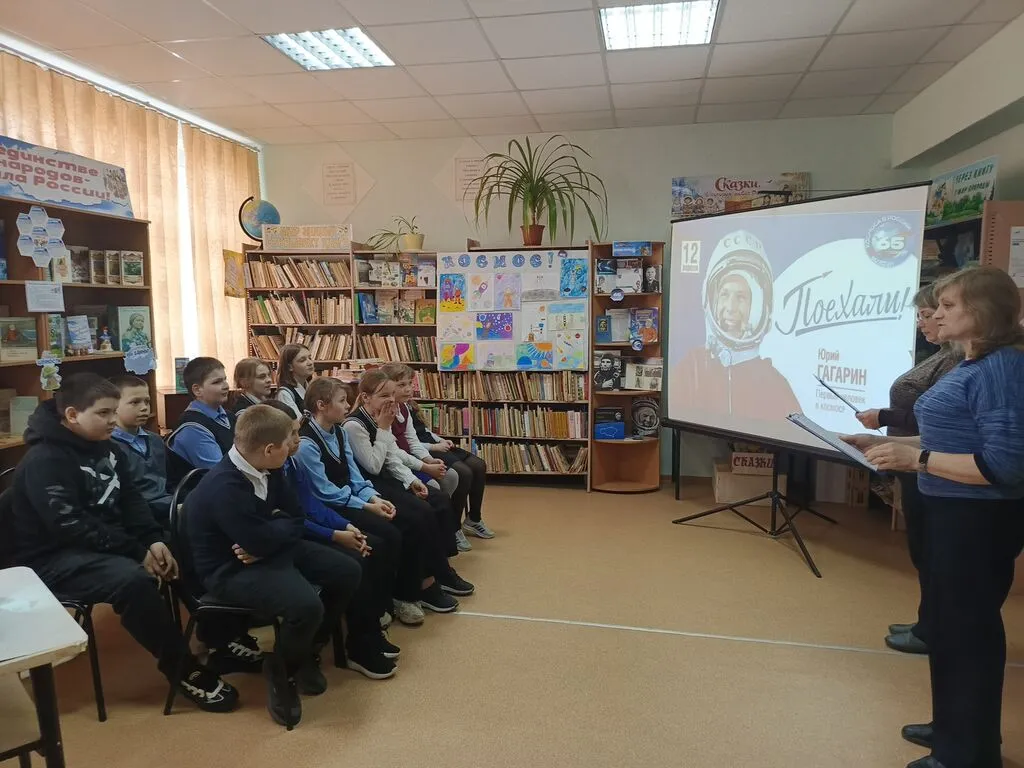 Ведущие познакомили ребят с удивительной историей жизни Юрия Гагарина, о его пути к звёздам, о его мечтах и стремлениях. Рассказ сопровождался презентацией. Вниманию школьникам был представлен увлекательный видеоролик о космосе, который помог им лучше понять масштабы Вселенной и её загадки. Завершением мероприятия стала космическая викторина «Космос- это интересно», где участники проверили свои знания о космосе, планетах, звёздах и, конечно же, о первом полёте человека в космос.